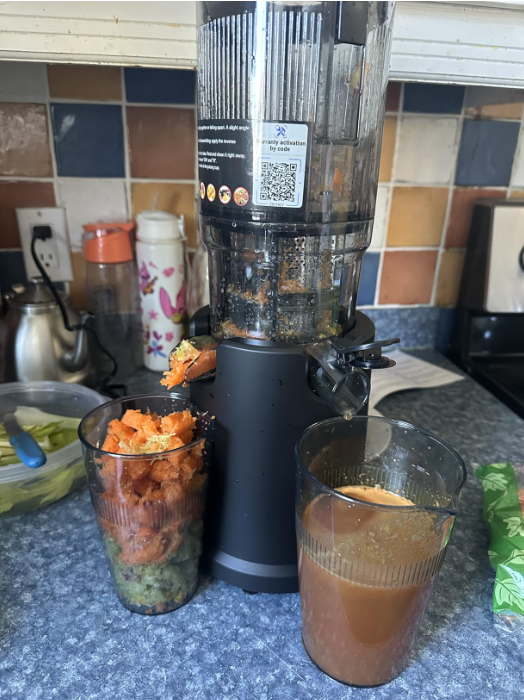 I use this juicer every morning! It’s powerful, quiet, and the juice tastes super fresh.